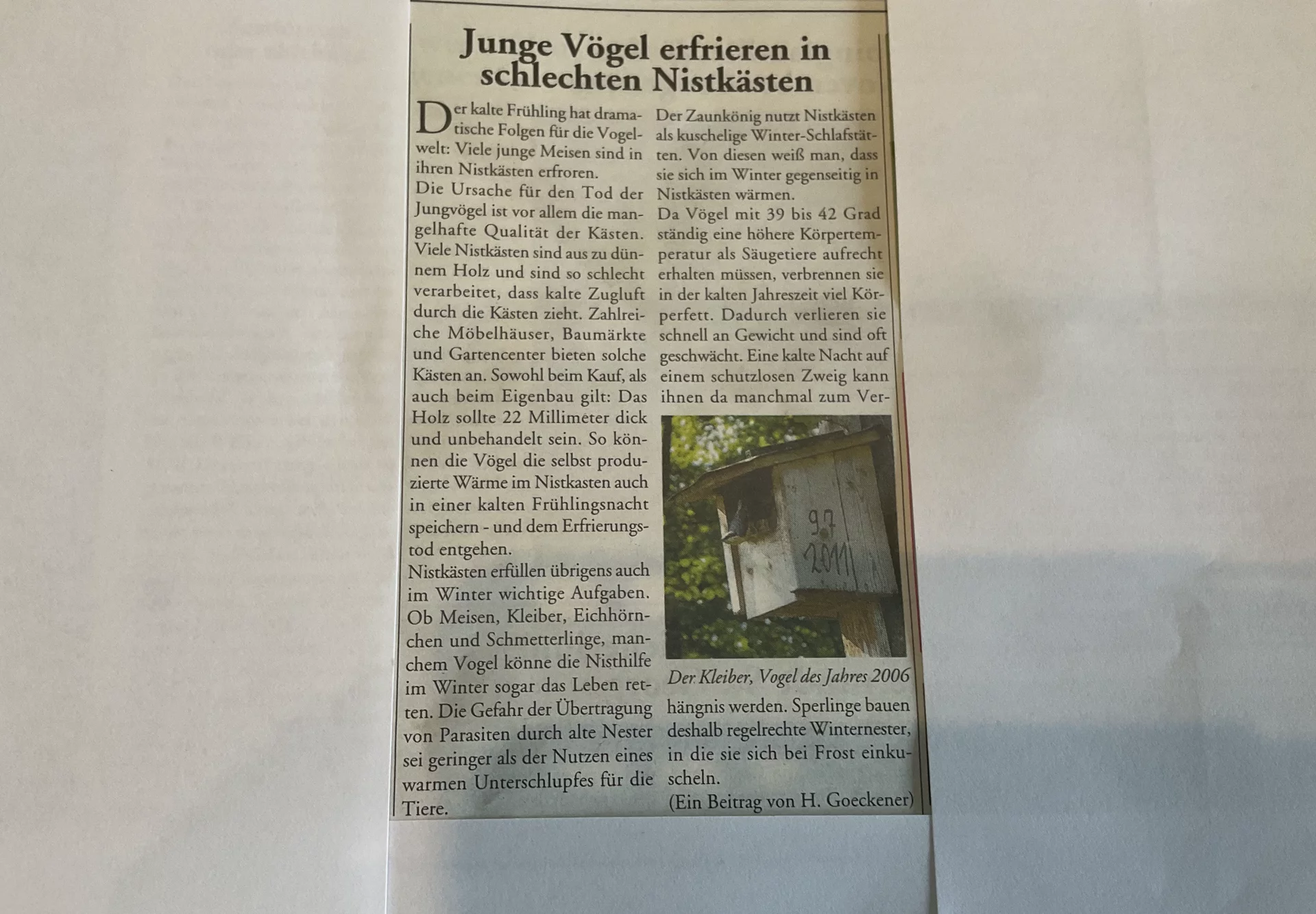 Wir bauen Nistkästen und Nisthilfen – ausschließlich aus gespendetem, recyceltem Holz.